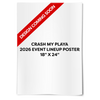 Commemorate the 11th year of fiestas on the beach with the limited edition Crash My Playa 2026 Lineup Poster. This 18" x 24" one-of-a-kind poster features the 2026 lineup, and all posters include a complimentary poster tube for transport to get it home safe.